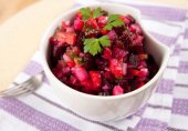 Давно известен и всеми обожаемый винегрет. Это классический рецепт, по желанию можно разнообразить фасолью, сельдью, горошком или капустой.