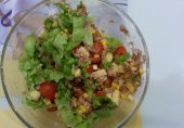 Богатый клетчаткой салат с самой полезной и нежной рыбкой – тунцом. Смесь листьев зеленых салатов, которых много сейчас продается в супермаркетах (или растет на собственных грядках), консервированный тунец, черри, оливки, пикантная заправка - отличный салат для перекуса или ужина для тех, кто бережет фигуру.