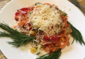 Цей салат особливо корисний для тих, хто уважно слідкує за власною фігурою. Завдяки «Грецькому йогурту» що входить у його склад, страва виходить легкою та поживною водночас