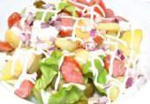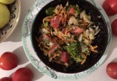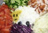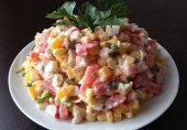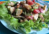 Салат из готовой копченой курицы по-домашнему и сезонных овощей
