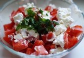 Быстрый и вкусный салат с креветками огурцом и помидором.