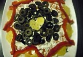 Для самой салатной «начинки» можно использовать любые ингредиенты, которые вам по вкусу. Можно заменить курицу мясом, можно добавить овощи или вовсе сделать этот салат вегетарианским, то есть спрятать под «арбузной» внешностью всё, что угодно