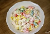 Салаты с макаронными изделиями давно вошли в наше меню, как праздничное, так и повседневное. Просто, сытно, быстро и вкусно - вот основные характеристики этого блюда.