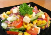 Салат с овощами, кукурузой и брынзой