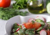 С приходом теплого времени года, хозяйки отдают предпочтение салатам из овощей. Причем, набор ингредиентов может быть самый разнообразный в зависимости от вкусов.