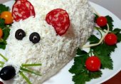 Под Новый Год крысы нужно готовить салаты, естественно, в виде крысы. Поэтому салат посвящен именно этой зверушке – пушистой, смешной и очень умной.