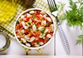 Салат с отварной фасолью и свежими овощами – прекрасное дополнение к мясу, птице или рыбе