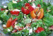Это простой и витаминный салат в сочетании с сыром моцареллой и свежими помидорами черри простой в приготовлении, и очень сытный.