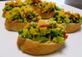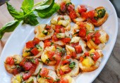 Брускетта с чесночным ароматом, свежим салатом, овощами и морепродуктами – это именно та вкуснятина, которая поднимет дух любого болельщика.