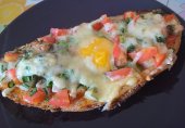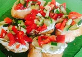 Брускетта - невероятно вкусные, хрустящие тосты багета, нежный сливочный сыр и сочные печенные овощи.