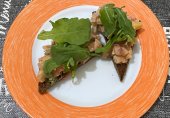 Брускетта - классическая итальянская закуска. Отличительная особенность брускетты от бутерброда или сендвича в том, что ломтики хлеба предварительно обсушивают до прожаривания (на гриле, решётке, в духовке или на сковороде без масла).