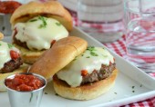 Вкусные бургеры с говядиной, пропитанной острым вкусом обжаренного поблано. Подавать, полив острым сливочным соусом чипотле.