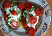 "Утренний "бутерброд с козьим творогом и зеленью.