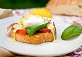 Бутерброды с яйцами-бенедикт и помидорами