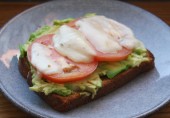 Отличный завтрак - бутерброд из ломтя цельнозернового хлеба с авокадо, помидором и сыром, обжаренный под бройлером.