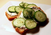 Пикантный бутерброд со свежими огурцами, чесноком и приправами.