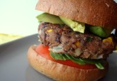 Вкусные, сочные бургеры с котлетой из бобов, кукурузы, сальсы с дольками авокадо и помидорами.