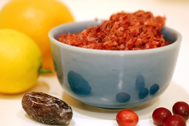 Соус из свежей клюквы с финиками, лимоном и апельсином прекрасно подходит для сэндвичей с индейкой.