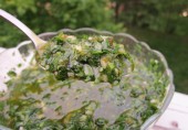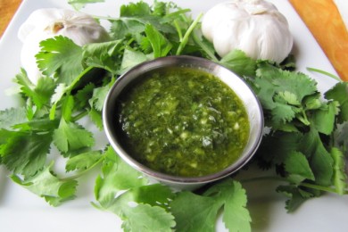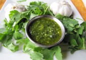 Аргентинский соус чимичурри - смесь свежей зелени с чесноком и лимонным соком, который принято подавать с говядиной.