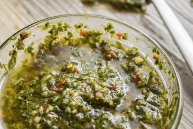 Острый аргентинский соус чимичурри можно приготовить и в домашних условиях. Он отлично подойдет к мясным блюдам и стейкам.
