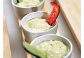 Сливочный греческий соус дзадзики из свежего огурца с чесноком, сметаной, йогуртом и уксусом.