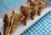 Пирожки из слоеного теста с начинкой из сливочного сыра с лимоном и ягодного джема.