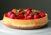 Американский пирог со сливочно-лимонной начинкой, украшенный клубникой и свежим базиликом и политый клубничным сиропом.