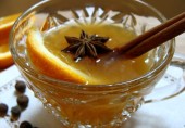 Горячий сидр с анисом, душистым перцем, палочками корицы и апельсином.