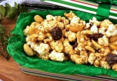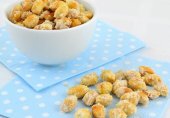 Попкорн с соленым арахисом, залитый сладкой карамелью из кукурузного сиропа с коричневым сахаром и ванилином и запеченный в духовке.