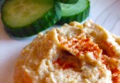 Соус хумус из консервированного нута с арахисовым маслом, чесноком, лимонным соком и специями.