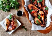 Сладко-пряные куриные ножки, маринованные в соевом соусе с бальзамическим уксусом, медом, чесноком, сахаром и розмарином и запеченные в духовке.