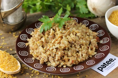 Рассыпчатый булгур с бараньим фаршем и луком- блюдо, пришедшее к нам из ливанской кухни. Адаптировав рецепт под мультиварку, у нас получается ароматное и сытное, вкусное и необычное блюдо, которое является полноценным вторым блюдом и подаётся к столу непременно в горячем виде, с большим количеством зелени, свежими овощами и острым соусом по вашему вкусу!