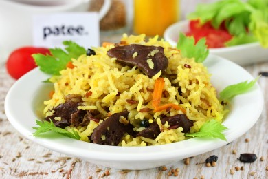 Плов со свиным сердцем получается абсолютно не жирным в отличии от плова с мясом, аромат и вкус блюда в основном создают пряности и специи (барбарис, зира, кориандр), овощи (морковь, лук, чеснок) и сам рис.