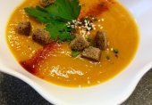 Очень необычное сочетание вкусов. Он должен быть немного сладковатым, с остринкой. Подавать с кротонами.