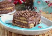 Десерт из печенья с шоколадным кремом и миндалем