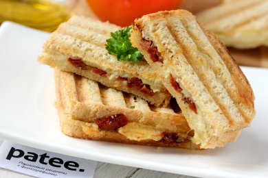 Горячие сэндвичи-гриль с начинкой из благородного сыра бри и вяленых томатов- лёгкие в приготовлении бутерброды с оригинальным и не избитым вкусом.