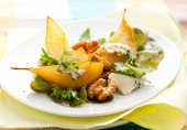 Необычное сочетание сладкой груши и соленого сыра, дополненное свежими листьями салата и орешками, понравится любителям кулинарных экспериментов!