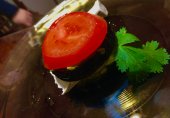 Сочные баклажаны с бри и соусом песто.