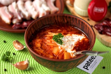 Готовим сытное и вкусное первое блюдо - красный борщ на мясном бульоне! Если вам для приготовления какого-нибудь блюда понадобилось лишь отварное мясо, и бульон остался, то на его основе можно сварить замечательный борщ, который по своему вкусу не будет уступать полноценному борщу с кусками мяса.