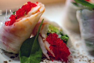 Попробуйте роллы с рисом, семгой, авокадо и васаби, завернутые в нори - японские морские водоросли. Будьте осторожны с васаби - оно очень острое!