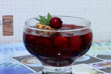 Традиционный испанский коктейль Сангрия - с апельсинами, яблоками, апельсиновым и лимонным соком, бренди, ликером и вином.