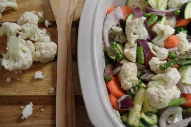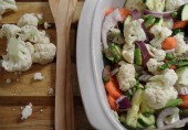 Овощи, запеченные с сушеными травами, вином Марсала и яблочным уксусом.