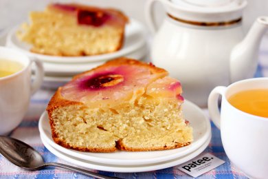 Пирог-перевёртыш с консервированными ананасами не только смотрится эффектно и аппетитно, он ещё и очень вкусный, к тому же готовится элементарно и легко сможет на семейном торжественном десертном столе заменить торт!
