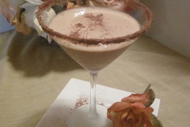Вкуснейший коктейль из шоколадного ликера, ванильной водки, ликера Крем де какао и мороженого в бокале с краями, покрытыми шоколадной стружкой!