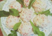 Понадобится: крабовые палочки (либо мясо), 2 яйца куриных, сыр грамм 100-150, 2 зубчика чеснока.