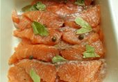 Інгредієнти 300 грам філе горбуші на шкірці в більш менш однакових 2-х шматках, морожену рибу повністю розморозити 60 грам солі 30 грам цукру Цедра 1-го лимону, подрібнити 50 мл горілки 1 л холодної кип'яченої води1) У невеликій мисці змішати сіль, цукор та цедру лимона.