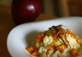 Соленые чипсы из красного картофеля с сыром горгондзола.
