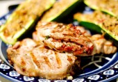 Свиные отбивные с начинкой из сыра горгондзола, малиной, тимьяном и фисташками, приготовленные на гриле.