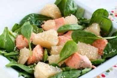 Салат с лососем и помело - это вкусный и аппетитный салат. Сочетание лосося и помело создают очень пикантный вкус.