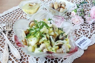 Салат "Белые ночи" с картофелем, курицей и грибами